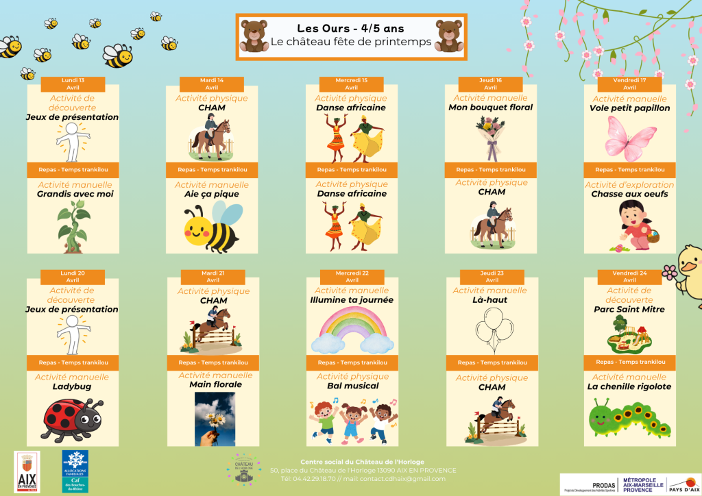♦ Accueil à la demi-journée; le matin avec repas ou l’après-midi sans repas.