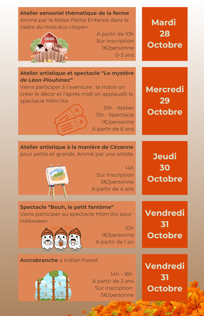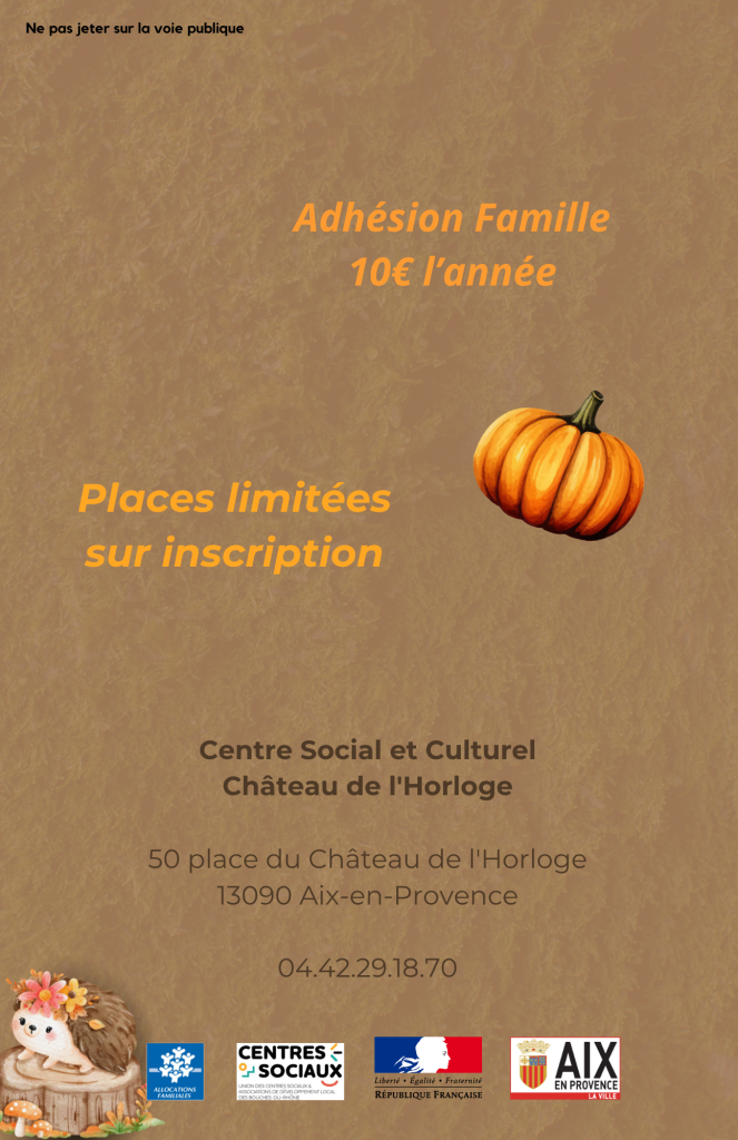 Une programmation spéciale d’activités vous sera proposée pendant les périodes de vacances scolaires. Des sorties famille sportives, culturelles ou de loisirs vous attendent !
