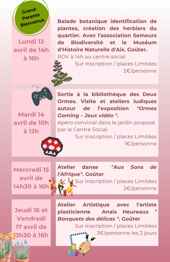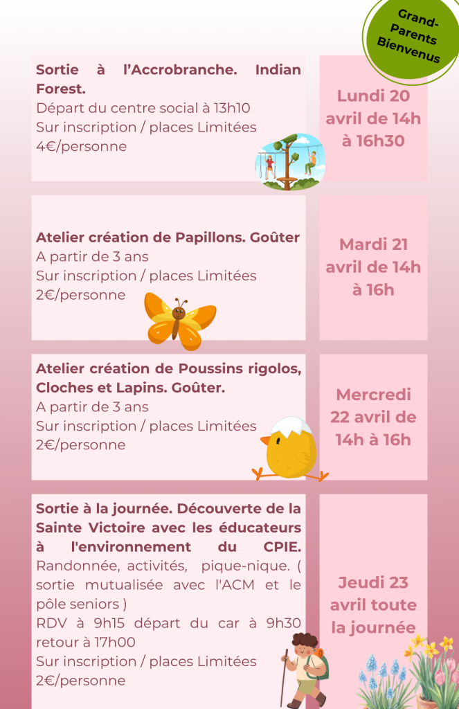 Une programmation spéciale d’activités vous sera proposée pendant les périodes de vacances scolaires. Des sorties famille sportives, culturelles ou de loisirs vous attendent !